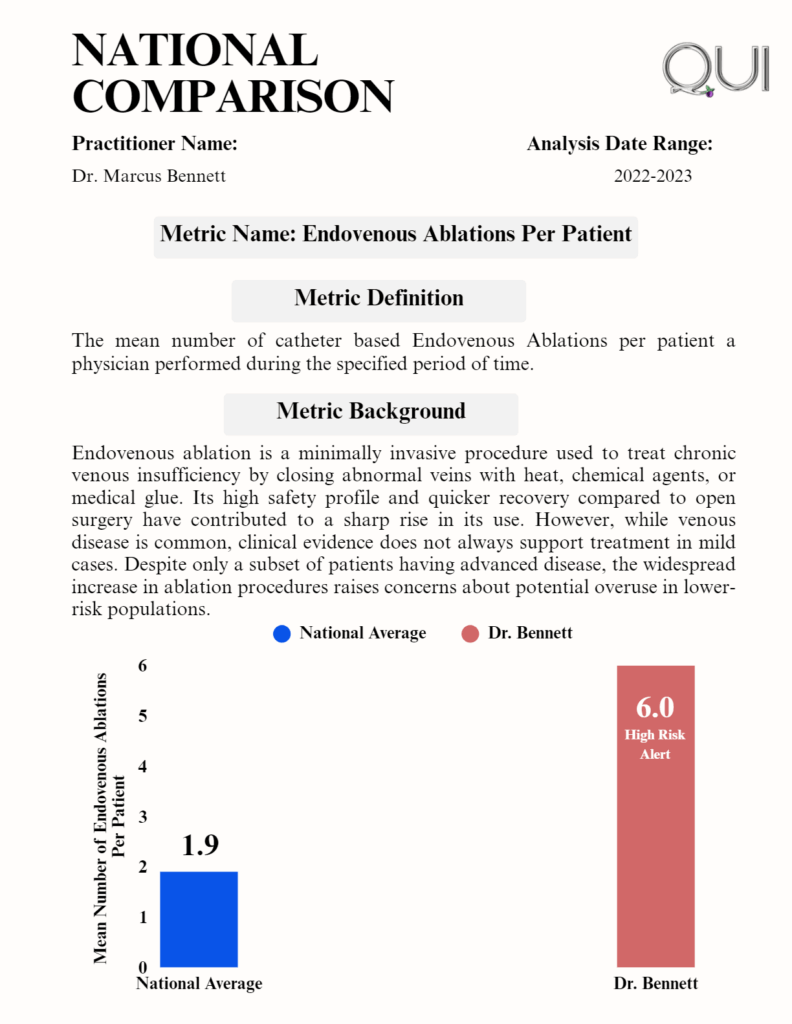 In one case, a man had his leg amputated after repeated invasive treatments for mild pain. In another, a 62-year-old woman died following an unnecessary procedure. QUI’s reports provide attorneys with early warning signs and post-event analysis alike. Whether you are assessing a new case or preparing for trial, this level of insight can help shape how your argument is built or countered.
